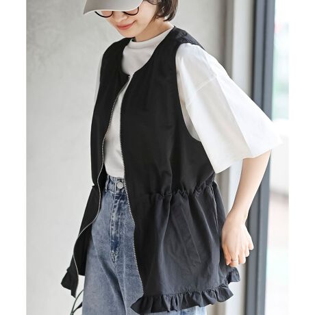 ナイロン裾フリルZIPベスト