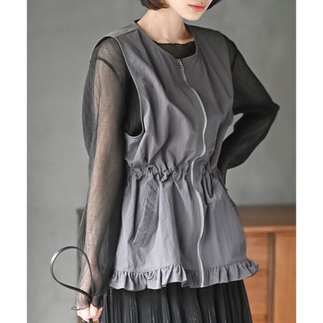 ハリのあるナイロンで仕立てたカジュアルライクなベスト。