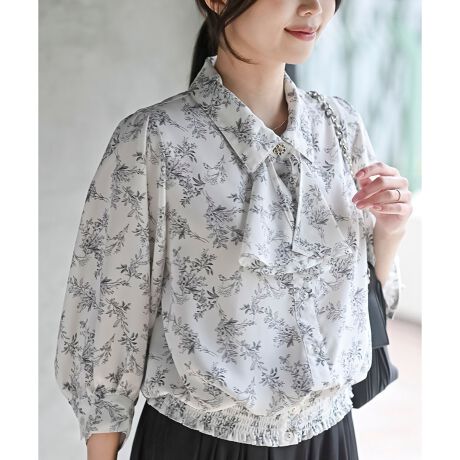 アンティークなムード漂う花柄ブラウス。