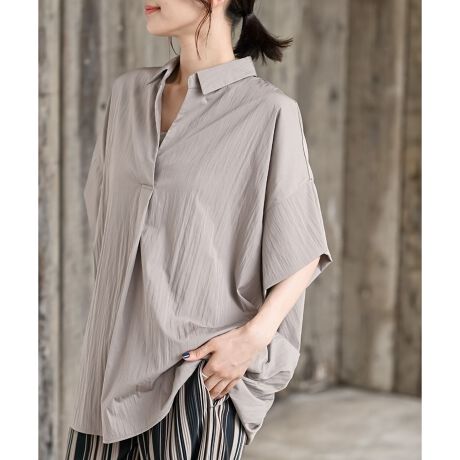 シワ加工スキッパーシャツ