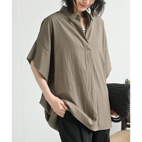 スキッパーカラーが抜け感のある女性らしい装いを演出するシャツブラウス。