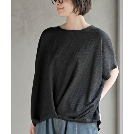 クシュっとした表面感のある柔らかな生地が肌触りもよくストレスフリーにご着用いただけます。