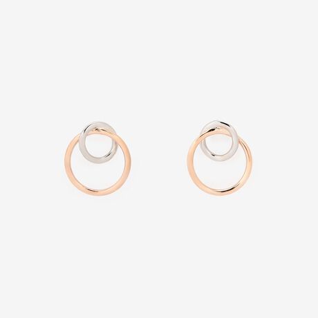 プラチナとピンクゴールドの優しい配色が魅力のコンビネーションピアス。