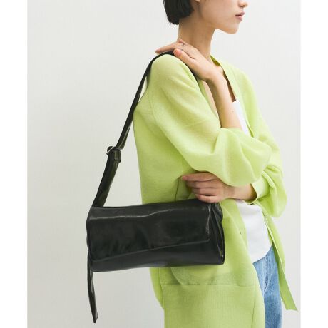 パテッドのような質感が特徴的なフラップショルダーバッグ。