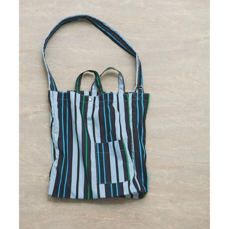 ギャザーを絞った時のフォルムが魅力的な、マルチ柄の2WAYトートバッグ。