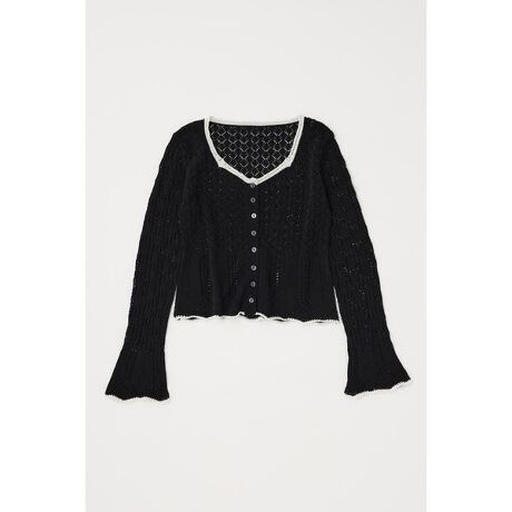 【EYELET LACE KNIT TOP / アイレットレースニットトップス】■ポイント針抜きの柄編みニットのトップス。■ディテール透け感と凹凸感のある表面感が特徴。■スタイリングフロントボタン仕様のカーディガンスタイル。※本品は透かし編みになっています。お取り扱いの際、ひっかけ等にご注意ください。■生地透け感:有裏地:無伸縮性:無光沢感:無■商品のお気に入り登録お気に入りアイテムの再入荷・在庫1点などの通知を受け取ることができます。■ブランドのお気に入り登録新作アイテムの入荷や人気アイテムの再入荷、おすすめトピックスなど、いち早くブランドの情報を受け取ることができます。[注意事項]※弊社管理上のカラーを表記しており、タグのカラー表記と異なる記載となっている場合がございます。※商品画像の色味は、屋外や屋内の光の照射や角度により実物と色味が異なる場合がございます。※着用、お取り扱いの際は、アテンションタグをご確認ください。
