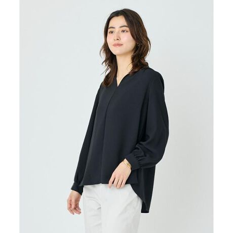 【2025春 セレモニー 卒園式 卒業式 入園式 入学式 フォーマル ハレの日】顔まわりが華やぐスタンドカラーのブラウス。胸元にかけてのネックラインが立体的なシルエットを作り、一枚でもサマになります。生地は程良い反発感と落ち感が特徴で、肌離れのよいさらっとした風合いです。肩に施したギャザーがポイントになり、ジャケットのインナーとして着用した際にも女性らしい華やかさを演出します。・水洗い可■素材■ソフトな風合いのバックサテン梨地ジョーゼット。特殊加工を施す事で、ナチュラルなストレッチ性と反発感がプラスされ、着心地の良さと上質感がアップしています。透けにくく、シワになりにくいイージーケア性、UVカット・吸水速乾・接触冷感効果等の機能を併せ持った素材です。■サンプル撮影商品■こちらの商品はサンプルでの撮影となっております。実際の商品とは、サイズや色味、素材、デザイン等の仕様が若干変更になる場合がございます。