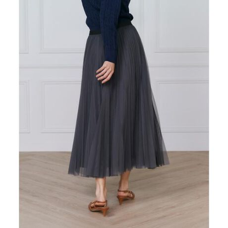 軽やかなチュールのプリーツスカート。細幅のプリーツが上品でシャープな印象です。内側にもチュールを重ねることで程よくボリュームを出しています。ウエストはゴム仕様で穿き心地良く、きれいめからカジュアルまで幅広いスタイリングを楽しめるアイテムです。裏地との境目に透け感があることで軽さが出て、抜け感のある着こなしが完成します。・裏地あり・ウエストゴム仕様■サンプル撮影商品■こちらの商品はサンプルでの撮影となっております。実際の商品とは、サイズや色味、素材、デザイン等の仕様が若干変更になる場合がございます。