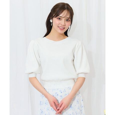バックリボンがワンポイント♪ 前後2WAYで楽しめるラメニットプルオーバー【Design】・シャイニー感のある半袖ラメニットトップス。・どちらを前にしてもご着用いただける2WAYデザインです。・袖口や裾はキュッと絞ったリブ仕立てのデザインで、ふんわりとした丸みのあるシルエットを演出してくれます♪・リボンは共地で作ることでガーリー過ぎない印象に仕上げました。・春などにも着やすい薄手のニットを使用した着回ししやすいアイテム!・伸縮性があり、動きやすく着脱ぎも楽々です♪【Fabic】・ほんのりとシャリ感のあるラメニットを使用。・ご自宅でお手入れが出来るのも嬉しいポイント♪・ホワイト、オレンジ、ピンクベージュ、ブラックの4色展開となります。【Care】手洗い可能