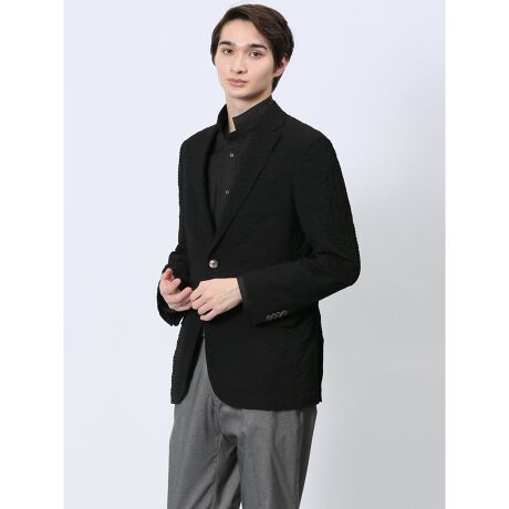 サマージャケットとして盛夏まで羽織れる、テーラージャケット(2つボタン・ノッチドラペル・サイドベンツ・2フラップポケット・左胸ポケット)です。表面感のあるドビーサッカーで程良いカジュアル感を表現しています。