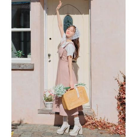 ハートネックがレディな雰囲気を演出する、甘すぎないショルダーリボンキャミワンピース【Design】・フラットのショルダーリボンデザインで大人っぽくも着こなせるキャミワンピース。・ハートネックで襟元をカーブに開け、デコルテラインを見せることで小顔効果を演出します。・肩のリボンは飾りリボンなので、ほどけてしまう心配もありません。・後ろはゴム仕様で伸縮性があり、レースアップでサイズ感の調整が可能◎・背中ファスナー付きで、着脱ぎが簡単にできるものポイント!・ウエストを高い位置で切り替えることで脚長効果も◎・インナーを変えることでロングシーズン着回していただけるアイテムです。・後ろはゴム&レースアップ仕様。・背中ファスナー付き。【Fabic】・ピンクとブラックはツイル生地、インディゴはデニム生地を使用し、美しいシルエットを演出。・ご自宅でお手入れが出来るのも嬉しいポイント♪・ピンク、インディゴ、ブラックの3色展開となります。【Care】洗濯機洗い可能