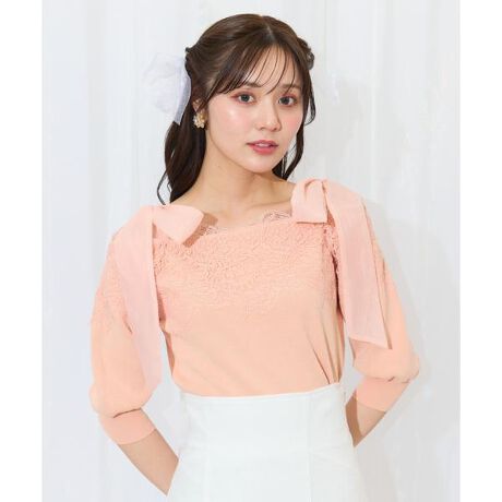 レーストリミング肩リボンニット