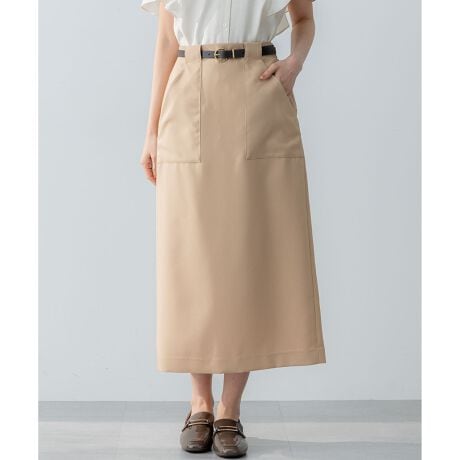 ■デザインスッキリとしたナロータイトスカートはトップスを選ばず、1枚あればスタイリングの幅が広がる万能スカートです。ベルト通しが一体化した大きめのポケットはデザインと機能性を兼ね備えています。アイボリーは裏地付き・ベージュ・ブラックは素材のストレッチ性を生かした裏なし仕様にしています。