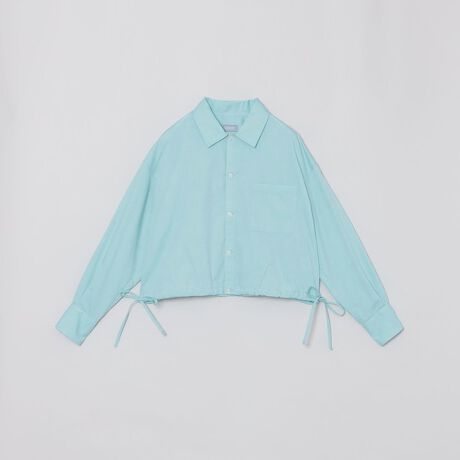 サイドリボンがデザインアクセントのクロップドシャツ。ハイウェストのワイドパンツなどのボリュームのあるボトムとバランスの良いトップスです。サイドリボンは結んでも垂らしてもどちらもバランス良く着ていただけます。