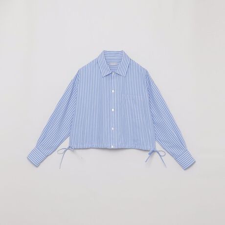 サイドリボンがデザインアクセントのクロップドシャツ。ハイウェストのワイドパンツなどのボリュームのあるボトムとバランスの良いトップスです。サイドリボンは結んでも垂らしてもどちらもバランス良く着ていただけます。