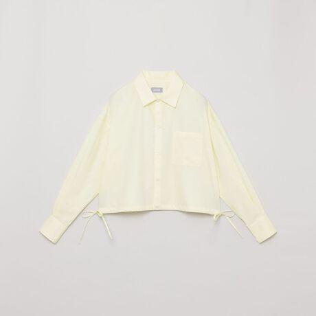 サイドリボンがデザインアクセントのクロップドシャツ。ハイウェストのワイドパンツなどのボリュームのあるボトムとバランスの良いトップスです。サイドリボンは結んでも垂らしてもどちらもバランス良く着ていただけます。