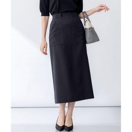 ■デザインスッキリとしたナロータイトスカートはトップスを選ばず、1枚あればスタイリングの幅が広がる万能スカートです。ベルト通しが一体化した大きめのポケットはデザインと機能性を兼ね備えています。アイボリーは裏地付き・ベージュ・ブラックは素材のストレッチ性を生かした裏なし仕様にしています。