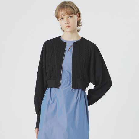 立体感のある素材で仕上げたブルゾン風カットソーカーディガン