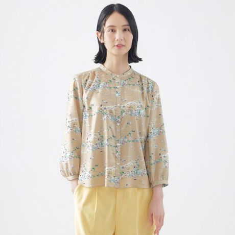 【イラストレーターコラボ企画】【ウォッシャブル】ビエラ Hamptonsプリントバンドカラーブラウス