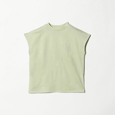 やや高さのあるクルーネックと、腕が少し隠れつつも短い丈で涼しさもあるフレンチスリーブ、タイト過ぎずダボダボ過ぎない身幅。シンプルですが計算されたデザインで、着姿が綺麗でした。