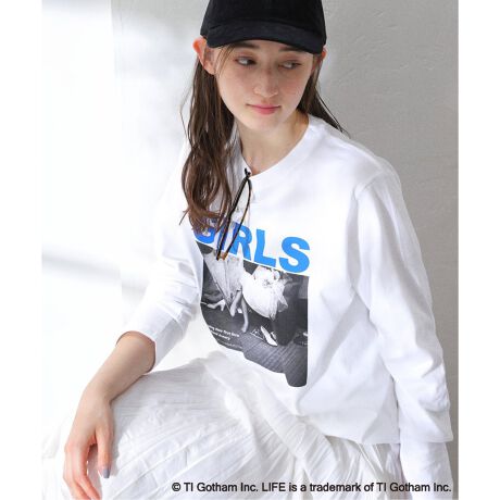 モノクロのフォトプリントに、「GIRLS」のロゴが目を惹くカットソー。