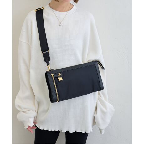 しっかりとしたナイロン素材に、ゴールドの金具でカジュアルにも綺麗目にも持てるデザイン。