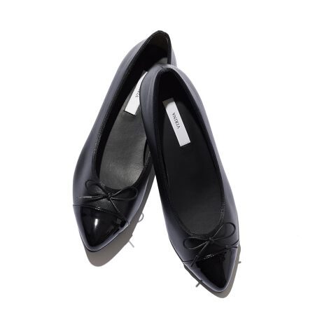 晴雨兼用ポインテッドトゥバレエシューズ (ブラック×エナメルブラック)