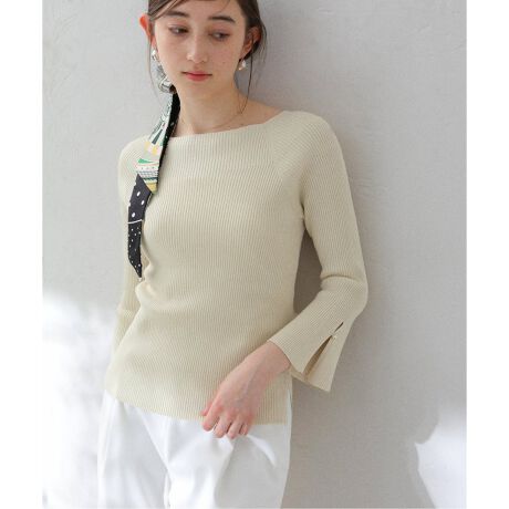 ボートネックはデコルテをキレイに見せ、女性らしさを惹き立ててくれます。