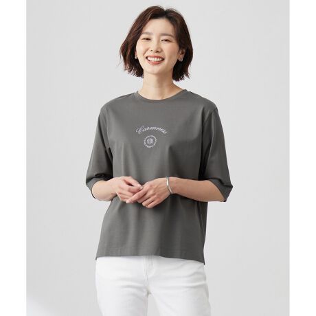 すっきりとしたシルエットで、インナーとしても活躍するロゴTシャツ。ロゴには「穏やか」や「充実した人生」等の意味をもつ言葉を取り入れ、ファッションを通して温もりや心地良さを感じて穏やかで幸福な時間を過ごしてほしいというテーマが込められています。中央にはJ.PRESS伝統の花文字のマークを添えています。肌寒い春先から気温の上がる夏まで長い期間活躍する6分袖で、春先はカーディガンやニットのインナーとして、暖かい日は一枚でもお使いいただける万能アイテムです。