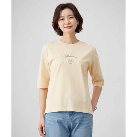 すっきりとしたシルエットで、インナーとしても活躍するロゴTシャツ。ロゴには「穏やか」や「充実した人生」等の意味をもつ言葉を取り入れ、ファッションを通して温もりや心地良さを感じて穏やかで幸福な時間を過ごしてほしいというテーマが込められています。中央にはJ.PRESS伝統の花文字のマークを添えています。肌寒い春先から気温の上がる夏まで長い期間活躍する6分袖で、春先はカーディガンやニットのインナーとして、暖かい日は一枚でもお使いいただける万能アイテムです。