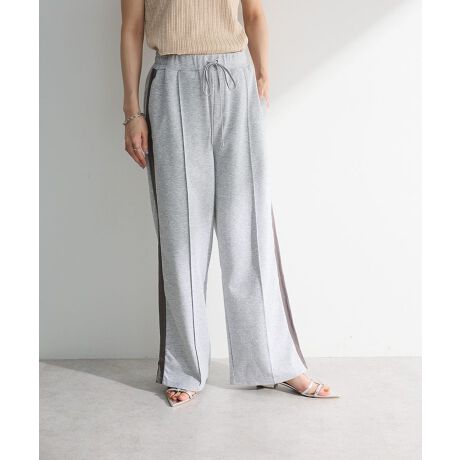 リラクシーな穿き心地が嬉しいワイドスウェットパンツ。ウエストラインにはバックゴムを施し、フロントをすっきりと見せたきれいめカジュアルな1着です。サイドの配色ラインやセンターシームデザインがスタイルUPを後押し。ベーシックで使い勝手が良く、ワードローブに加えておきたいおすすめのアイテムです。透け感[なし]