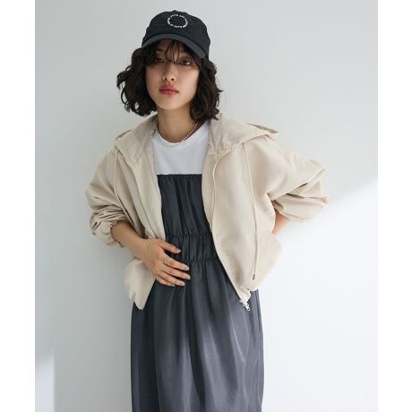 表面感の綺麗な素材で仕立てたマウンテンパーカー。やや肩の落ちたリラックスシルエットで、ふんわりとしたバルーン裾がフェミニンな印象です。フロントジップは上下どちらからでも開閉でき、着こなしに合わせて調節可能。短い着丈で様々なボトムと合わせやすく、長く愛用していただけるアイテムです。透け感[なし]