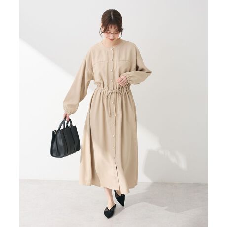 デザインの異なるアンティーク風ボタンが華やかなワンピース。手触りの滑らかな素材で仕立て、ふんわりと広がるAラインシルエットが上品な印象です。胸元にシームポケット付きで、実用的な点も魅力的。デイリーにはもちろん、オケージョンシーンにも活躍するおすすめのアイテムです。透け感[なし]