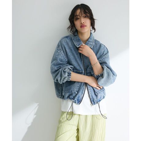 洗いをかけたような色合いがヴィンテージ感のあるステンカラーブルゾン。柔らかいデニム素材で仕立て、ゆとりのあるサイズ感で快適に着用していただけます。裾のドロストコードを調整して、お好みのシルエットに変えられるのも魅力的。カジュアルにもフェミニンにも合わせやすく、デイリーに活躍するおすすめのアイテムです。透け感[なし]
