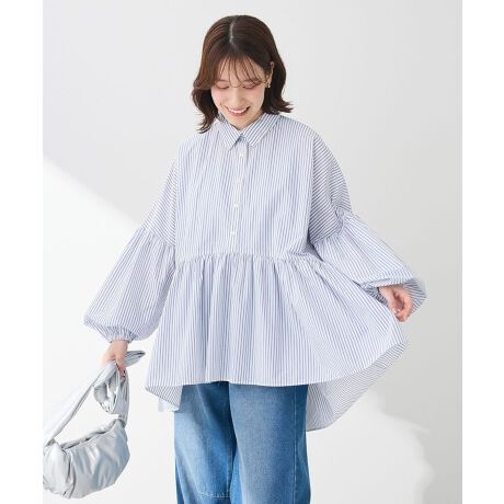 爽やかなストライプ柄が春にぴったりなシャツチュニック。ウエスト位置に切り替えを入れたふんわり広がるシルエットがフェミニンな印象です。前後差のあるヘムラインがこなれたスタイリングを演出。身体のラインを拾いにくいサイズ感でスタイルアップ効果も期待できるおすすめのアイテムです。透け感[ややあり]