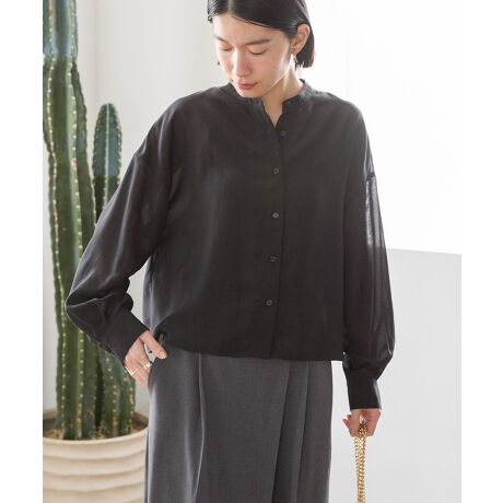 シアーな素材で仕立てたデザインブラウス。軽やかでナチュラルな雰囲気が春にぴったりで、透け感を生かしてインナーとのコントラストもお楽しみいただけます。短丈でワイドボトムやスカートなど様々なボトムと合わせやすく、スタイルアップ効果にも期待。前ボタンを開けて羽織としても着用でき、ロングシーズン活躍するアイテムです。透け感[ややあり]