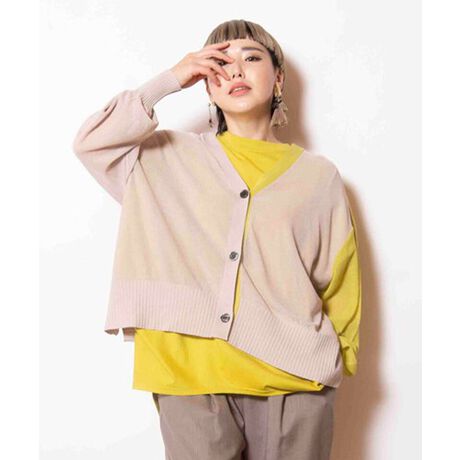 存在感のあるバイカラーながら、透け感でコーディネートに馴染みやすいニットカーディガン。