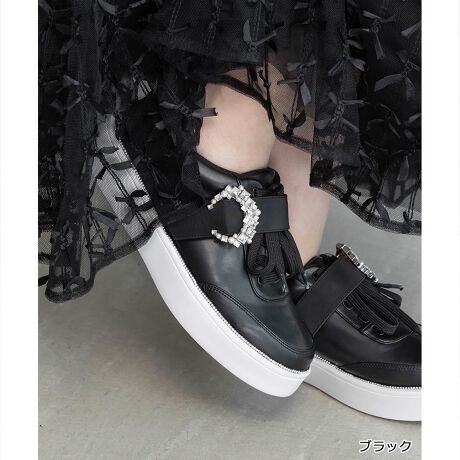 ビジューとパールを組み合わせた煌めくパーツが大人可愛いスニーカー。