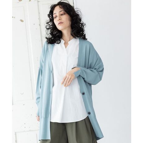 スタンダードなミディ丈のカーディガンは、さり気ないシアー切替と、スリットスリーブが抜け感を演出。