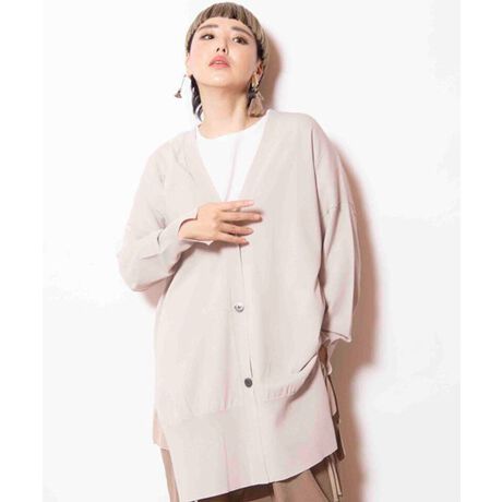 スタンダードなミディ丈のカーディガンは、さり気ないシアー切替と、スリットスリーブが抜け感を演出。