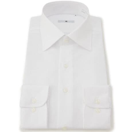 コットン100%・左胸ポケット・形態安定加工・ややゆったりサイズ。