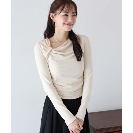 流れるようなドレープ感たっぷりのネックラインが上品なカットソー。