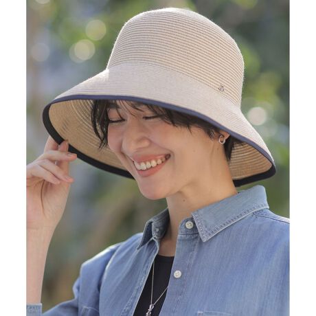 ■デザイン繊細で柔らかいポリエステルブレードを綺麗に縫製した、ワイドブリムハットです。天然素材風ですが、ポリエステル素材なので、ご自宅での水洗いが可能です。つばが下向きのダウンブリム型なので日差しを遮り、柔らかい素材なので畳んで持ち歩けるのも嬉しいポイント。帽子の内側のテープを引いて頂くとサイズ調節が可能です。帽子のサイドにはJ.PRESSのオリジナルロゴチャームをあしらい、シンプルながら高級感のあるデザインにしました。ベージュxトリミングブラック(#033)の夏の定番カラーと、大人っぽい洗練された印象のライトグレーxトリミングブラック(#003)、WEB限定のナチュラルxトリミングオフ(#002)の、顔映りの良い爽やかな3色での展開です。