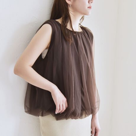 quaranciel:〈手洗い可能〉チュール バルーン ノースリーブ プルオーバー