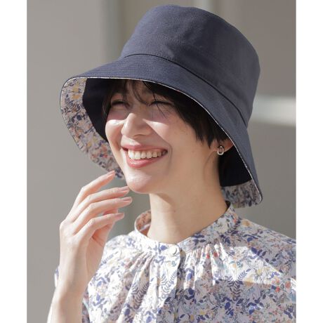 夏の旅行にもおすすめ!ちらりと見える柄が上品なLIBERTYハット■デザインツバ裏にlibertyプリントを使用し、チラ見えが可愛いハットです。上品にあしらったlibertyは派手過ぎることなく、顔周りを華やかにします。後ろに向かってツバの長さを長くしたアシンメトリーな形で、気になる首の後ろの日差しをカット。ツバにはワイヤー入りでお好みの形で着用して頂け、また畳んでバッグに入れて持ち運び頂けます。帽子の内側のテープを引いて頂くとサイズ調節ができ、ご自宅での水洗いも可能です。libertyプリントはブラウス(BLGJGS0350/0351)と同じ素材を使用し、ブラウスとのトータルコーディネートをお楽しみ頂けます。#033ベージュと#054カーキのツバ裏は<Emilia`s Flowers/エミリアズフラワーズ>、#075ネイビーのツバ裏はのカラーリングになります。目を惹く華やかなlibertyプリントはギフトにも最適。洗えて畳めて機能性もあり、夏のご旅行にもぴったりのハットです。