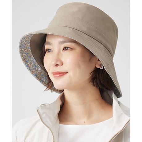 夏の旅行にもおすすめ!ちらりと見える柄が上品なLIBERTYハット■デザインツバ裏にlibertyプリントを使用し、チラ見えが可愛いハットです。上品にあしらったlibertyは派手過ぎることなく、顔周りを華やかにします。後ろに向かってツバの長さを長くしたアシンメトリーな形で、気になる首の後ろの日差しをカット。ツバにはワイヤー入りでお好みの形で着用して頂け、また畳んでバッグに入れて持ち運び頂けます。帽子の内側のテープを引いて頂くとサイズ調節ができ、ご自宅での水洗いも可能です。libertyプリントはブラウス(BLGJGS0350/0351)と同じ素材を使用し、ブラウスとのトータルコーディネートをお楽しみ頂けます。#033ベージュと#054カーキのツバ裏は<Emilia`s Flowers/エミリアズフラワーズ>、#075ネイビーのツバ裏はのカラーリングになります。目を惹く華やかなlibertyプリントはギフトにも最適。洗えて畳めて機能性もあり、夏のご旅行にもぴったりのハットです。