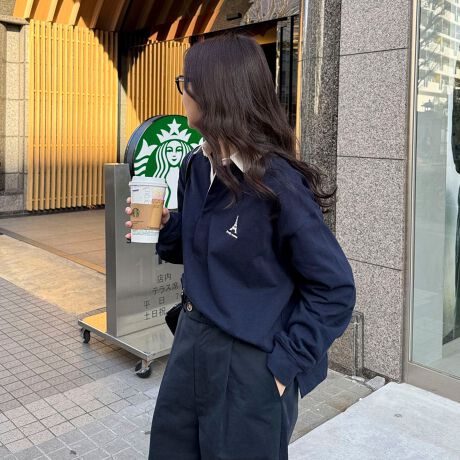 ・ワンポイント刺繍がポイントのトレンド感あるラガーシャツです