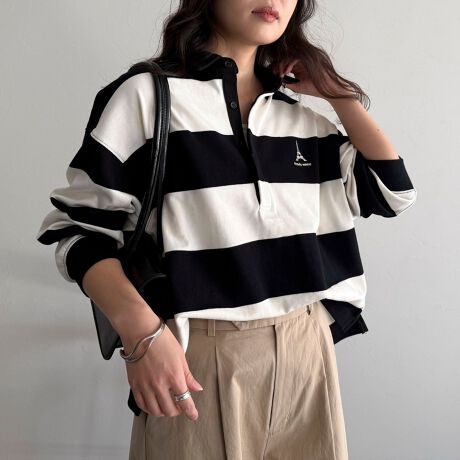 可愛いワンポイント刺繍がアクセントになったラガーシャツ