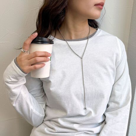 幅広いスタイリングに重宝するボールチェーンフリーネックレス