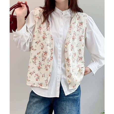 プリント柄ニットベスト